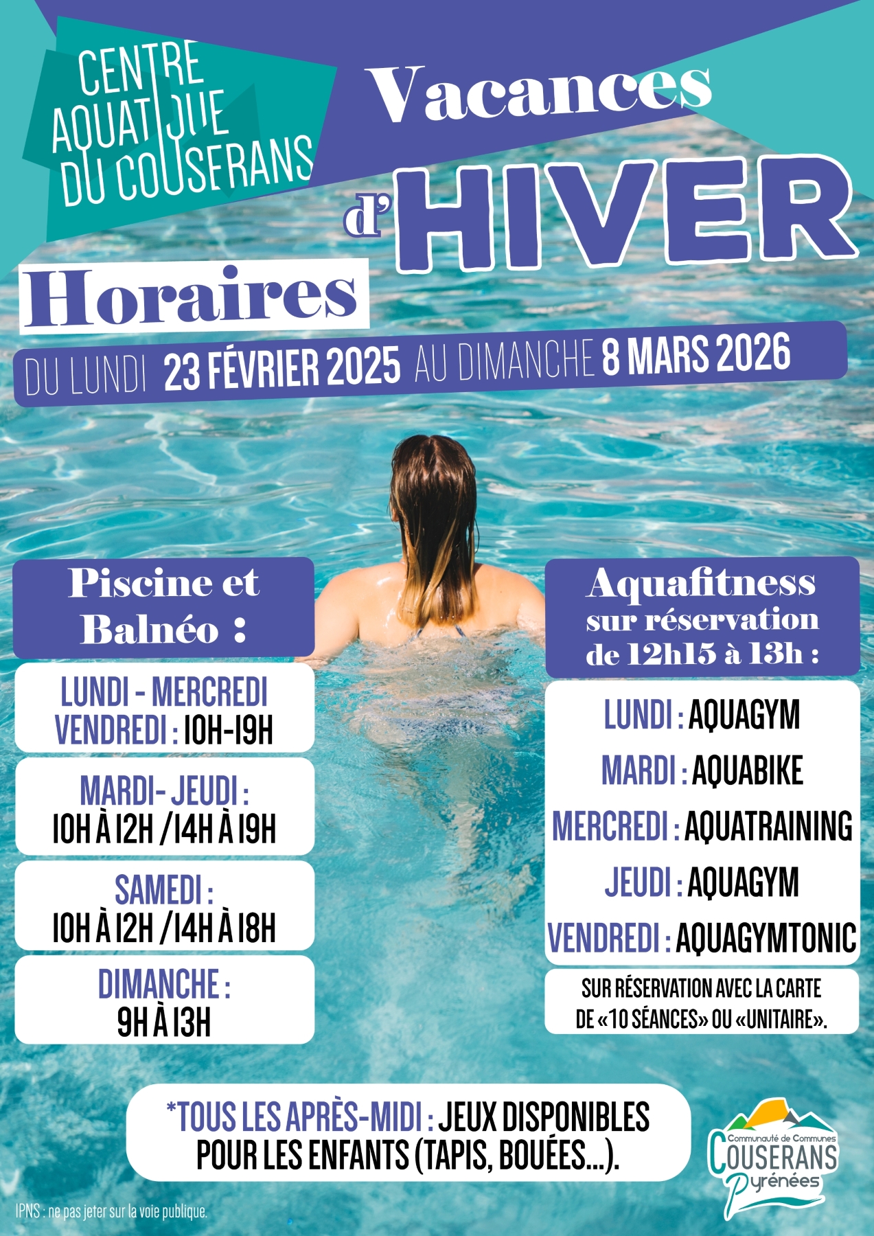 Les agents d’accueil restent à votre écoute afin de vous présenter ce nouveau service si vous le désirez. Certains produits seront téléchargés sous forme de QR Code sur votre téléphone et d’autres à échanger à l’accueil. Nous vous laissons découvrir le site : https://centre-aquatique-du-couserans.horanet.com
